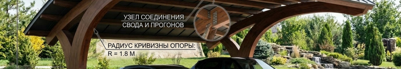 Уникальный парковочный навес «Ракушка» 000301R из дерева лиственницы от производителя WoodWave, изготовленный из гнутого бруса. Не оставит равнодушным ни одного любителя своего автомобиля.Привлекательный дизайн и конструкция навеса «Ракушка» из дерева лиственницы от производителя..